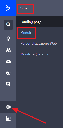 poi andare dentro il tuo account Active Campaign, sotto la sezione Sito > selezionare Moduli (Forms)