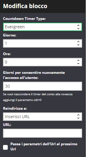 + Solo mobile= il blocco Countdown Timer verrà visualizzato solo sui dispositivi mobili