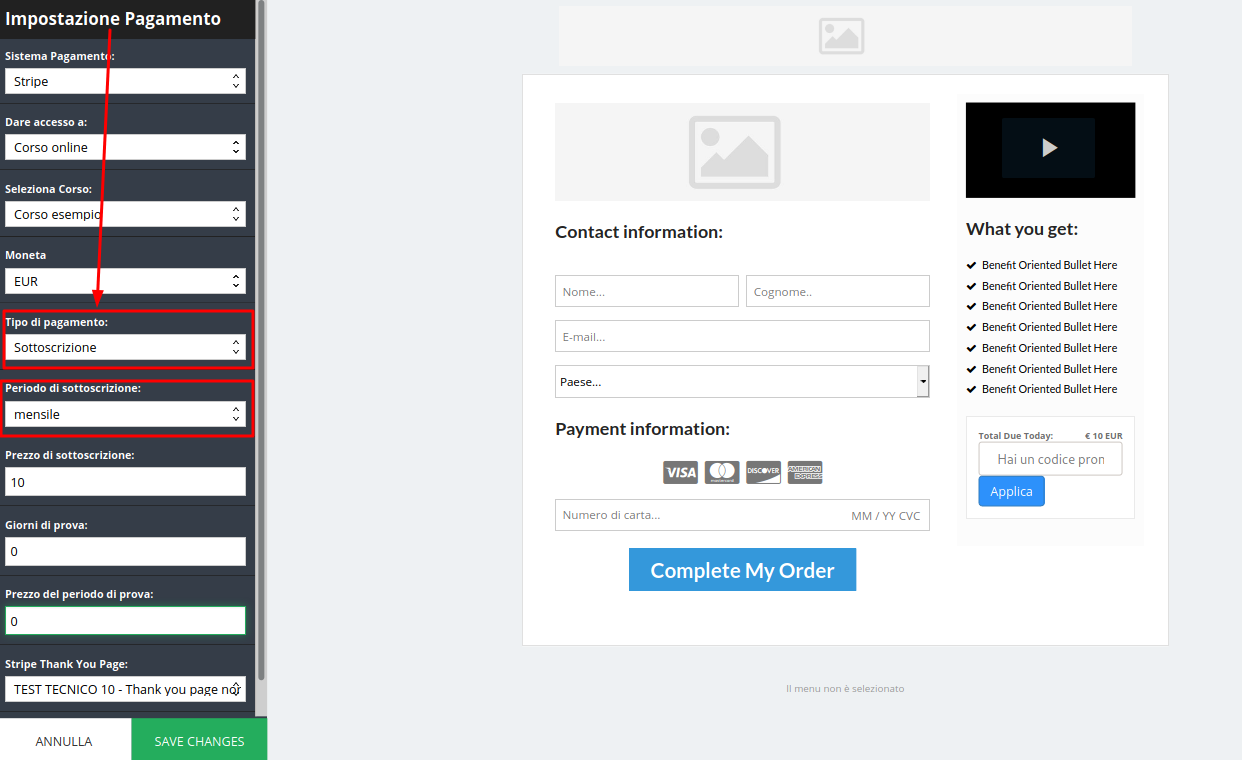 Sistema di pagamento (a scelta tra: Stripe, Paypal, Stripe&Paypal),